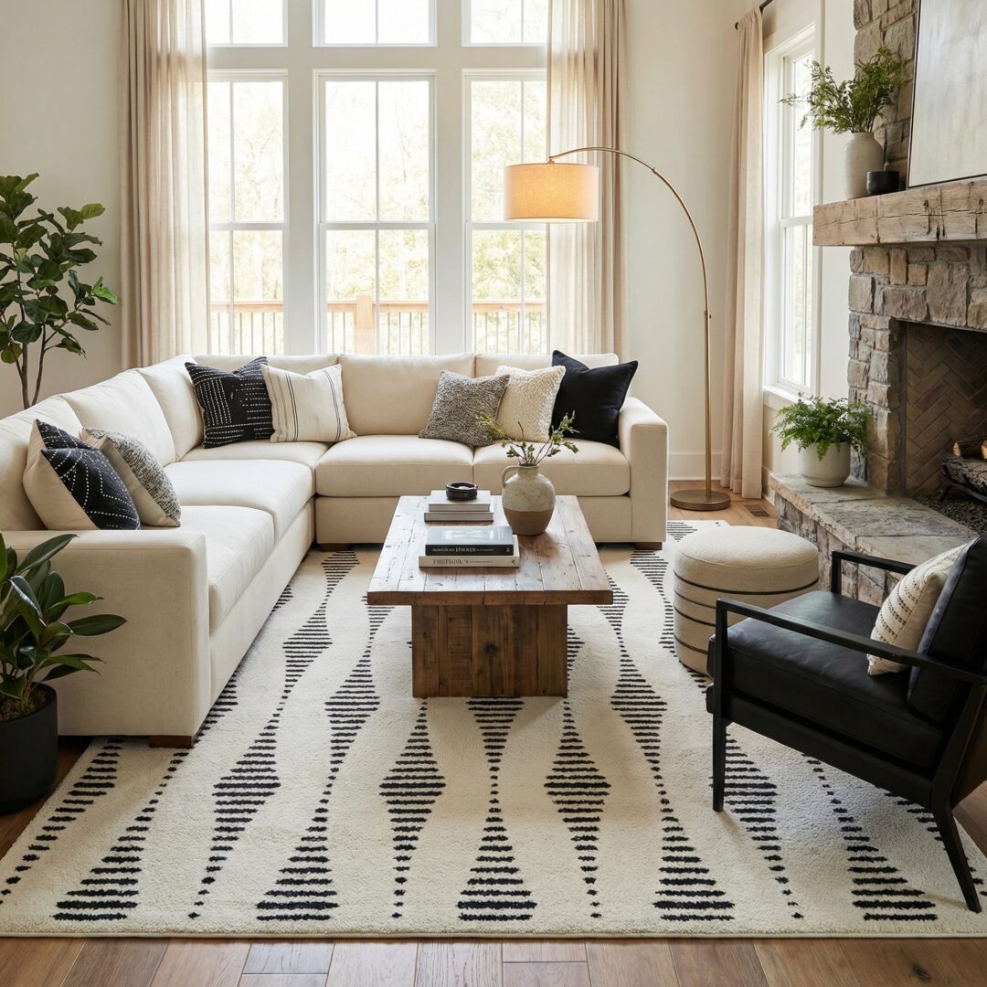 קולקציית שטיחי מרקש החדשה מתאפיינת בדוגמאות גיאומטריות מרוקאיות בשילוב צבעי לבן , אפור בהיר ושחור.